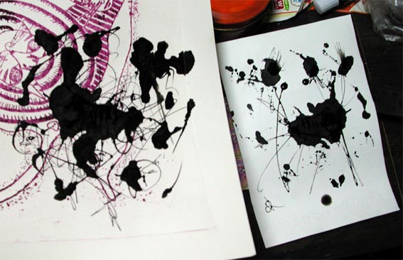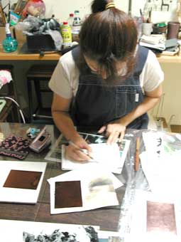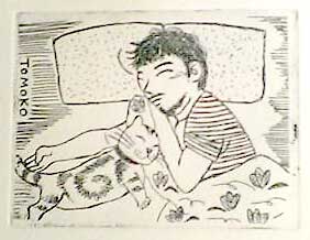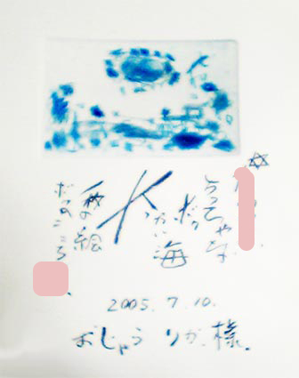 エッチングの体験講習会は、 アトリエの来訪者が、プレス機を発見すると、 勝手に始まります。 (銅板に傷をつけて刷るだけの簡単技法もあるので) ほとんどの来訪者が、 アーティストということもありますが、 まあ、世間話をしている時間もなく、 作品作りを通して、技法の伝達とか、 創作時間の共有とかがあると より、思い出深い時間になり、友情も深まります。 --------- エッチングも、高校の時に、美術の授業で 体験し、思いの外カンタンだったので、 自分で作ろうと思いましたが、難しく、 体験入学からの、本格的に技法を学ぶ スクールに通いました。 一番便利だなと思うのは、版画作品を購入したり、 拝見したりするときに、 見た目で、技法が理解できることが多いので、 購入に失敗しない(ニセか本物か自分で判断できる) ことだろうと思います。 版画協会主催の版画展にも、毎年通い、 新しい表現へのチャレンジについても、 楽しく情報を集めています。 ----------- 【知人の作品-1】