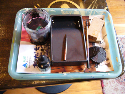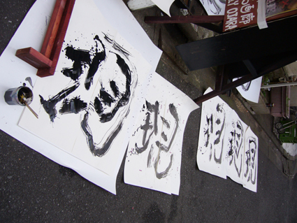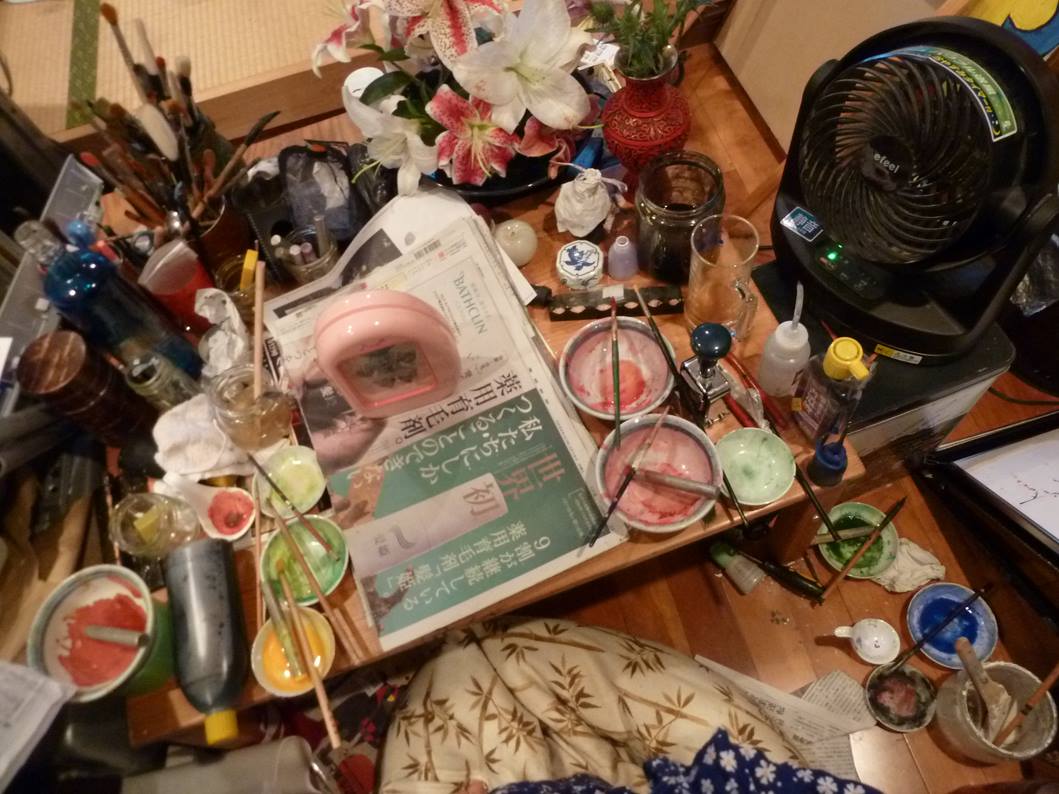 ぬいぐるみの足なども筆になっているため、 墨の含みが複雑になり、予期しないニジミや カスレが作れます。 展覧会での評判は悪かったです。汗。 -------- 普段は、こんな感じです。