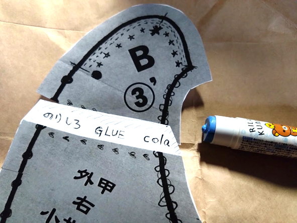 次にすることは、 BとB' EとE'を糊付けします。