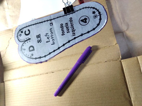 次に、この型紙を、厚紙に写してゆきます。 クリップや洗濯ばさみで止めて、マジックで りんかく線を書き入れます。