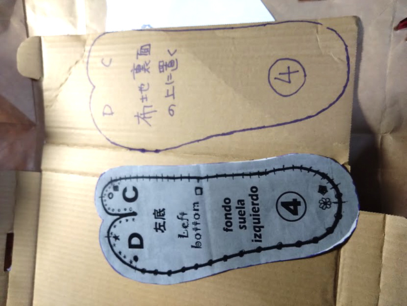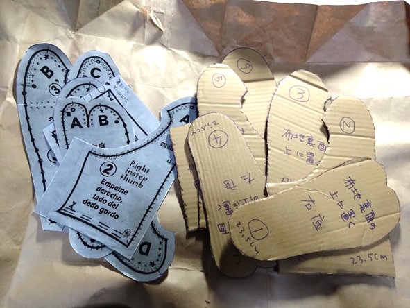この型紙は、全て布地の裏面の上に置いて 作業をしますので、忘れないように、 メモを書き入れます。 それから、番号と、【左底】【内甲左】のように、 型紙の名称を書き入れましょう。