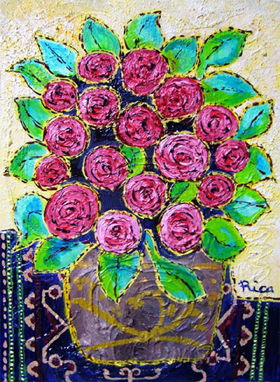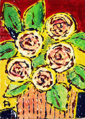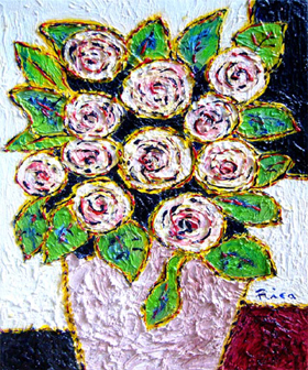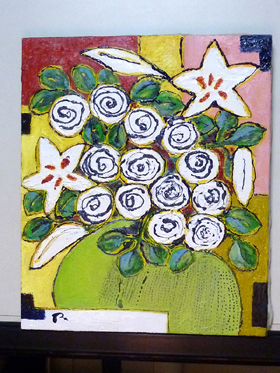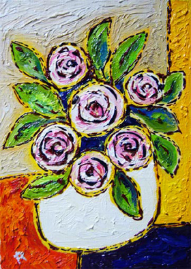 油彩は独学で、楽しく描いています。 2003年に北千住にアトリエを開き、コツコツと 描いていました。 最近は、大量の絵画を見て歩いたため、 前衛的な表現に進みすぎてしまい、 とりあえず、2011年以降は、発表も 致しておりません。 200枚ぐらいあると思います。 バラの絵は良く売れました。 ので、収蔵できない可能性が高いです。
