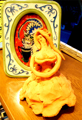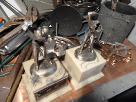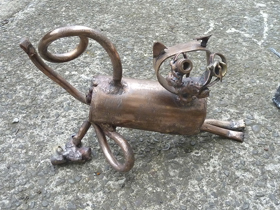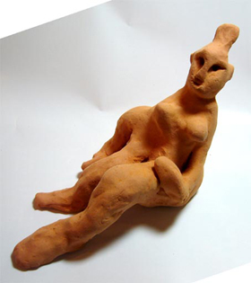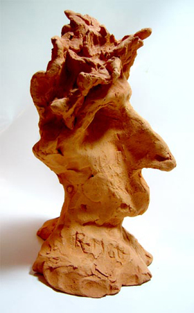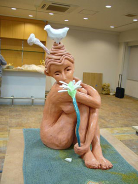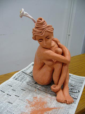 クロッキー(人物の早書きなど)が描けるようになって自然と立体に進んでいました。 最初は紙粘土なんかで作っていましたが、 2006年に、東京芸大の公開講座 『テラコッタで塑像を作る』 という講座を受講して、北郷悟教授に テラコッタの塑像の作り方を教えて頂きました。 その後、至近の『一隅窯』にて、 テラコッタ作品などを焼いていただいていました。 ------ 自分のギャラリーの看板を作ったら、 近所のお店で頼まれたり。 -------- そのあと、職業訓練校で、溶接を習ったり。 色々なことがありました。